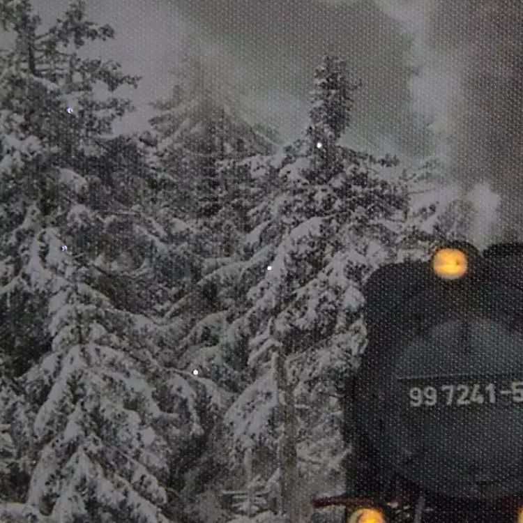 The Train in Winter Woods LED Canvas Art Print will incorporate some scenic beauty into your Christmas decor. The warm train headlights and white tree lights perfectly illuminate this frosty landscape.