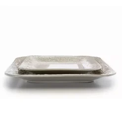 Kirklands Home Dinnerware|Cream Lotus Pattern 16-pc. Square Dinnerware Set Ivory
