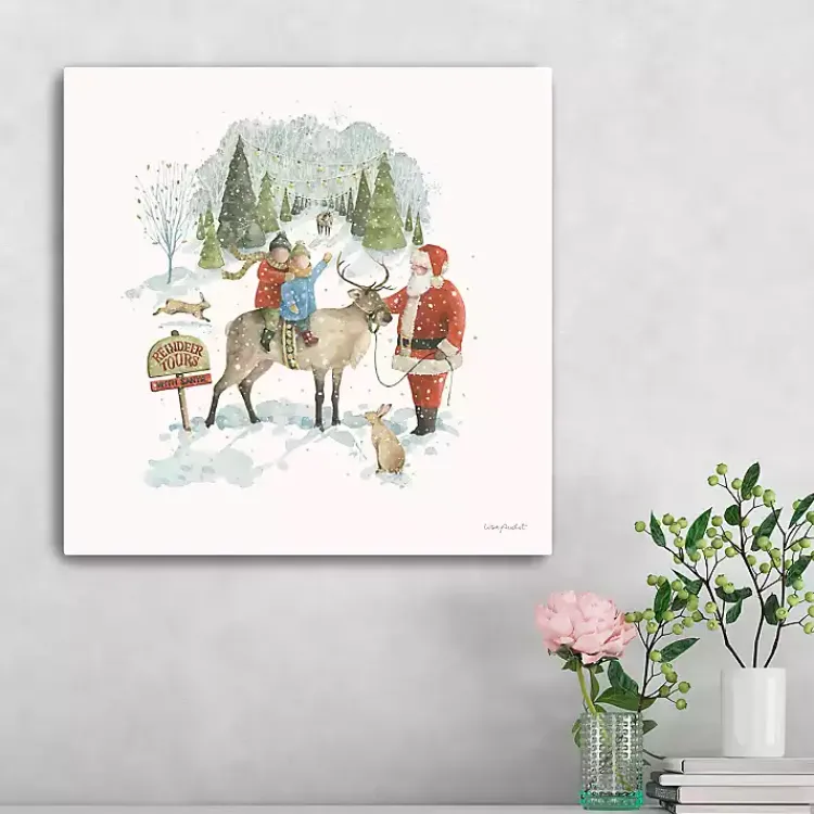 Invite a playful Christmas magic into your home with this Santa’s Tree Farm Canvas Art Print. Its adorable, snowy scene is sure to keep your walls merry and bright!