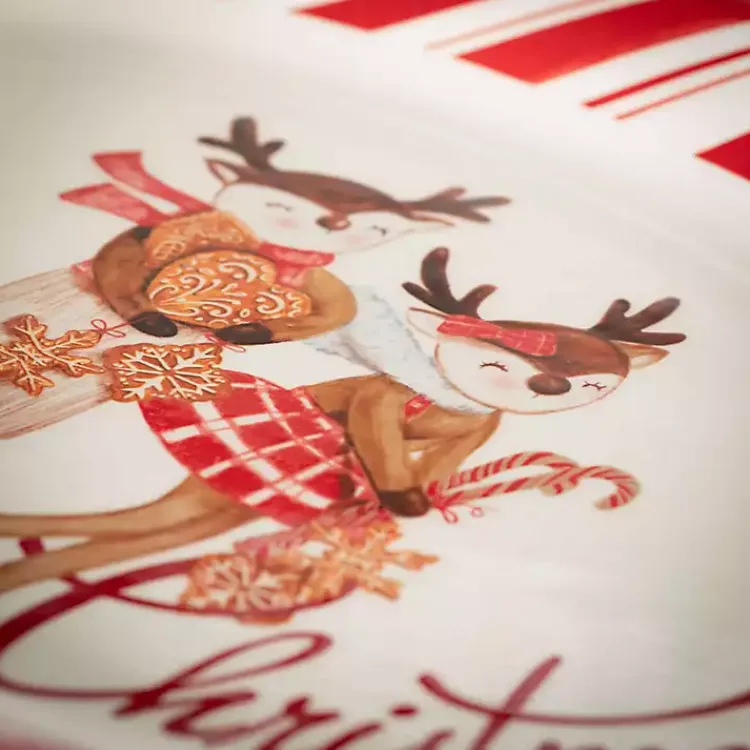 This Cute Reindeer Merry Christmas Platter is perfect for serving up holiday cookies and treat! Featuring festive designs of reindeer with frosted gingerbread and a red and white candy-stripe pattern, this joyful platter brings whimsical holiday cheer!
