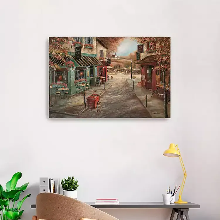 Featuring a cobblestone street dotted with orange leaves, this Fall Splendor Canvas Art Print captures the spirit of the season. It will fill your home with that cozy, autumnal feeling!
