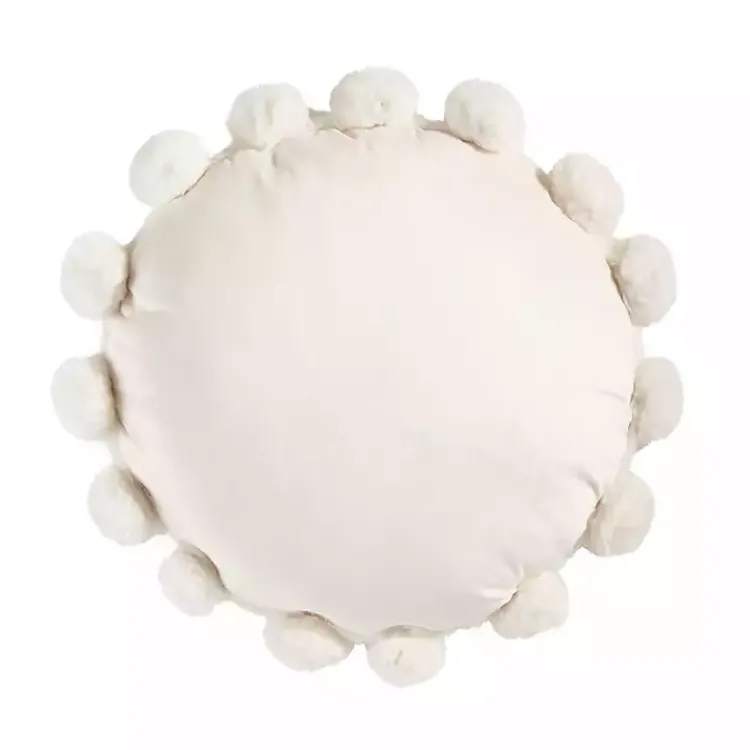 Accent your home with this White Faux Fur Round Pom Pom Throw Pillow! The soft faux fur is perfect for getting cozy on your couch. The pom poms will bring a fun look to your space that you’ll love!