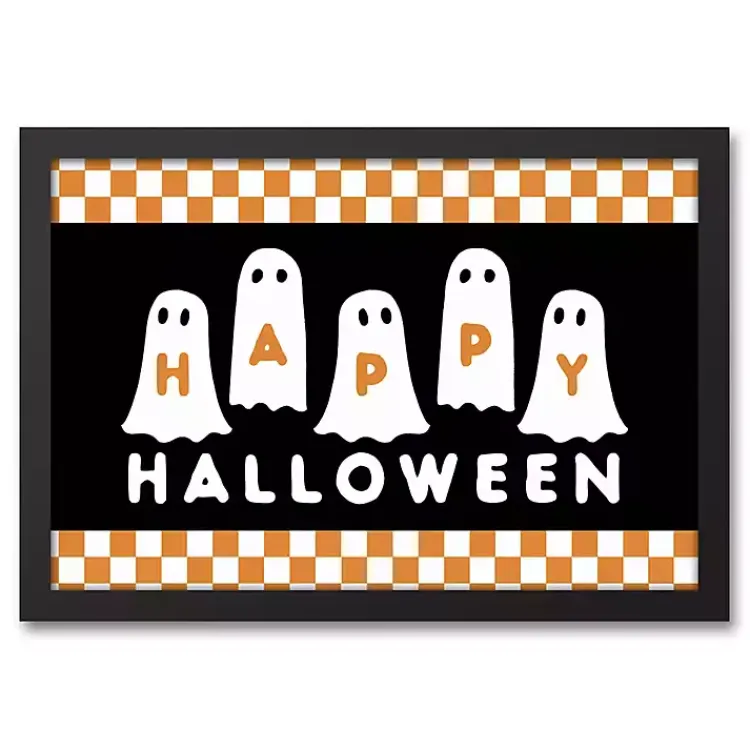 The adorable ghost group featured on this Happy Halloween Ghosts Framed Canvas Print will give guests a friendly greeting. Checkered accents give this piece a fun, modern touch!