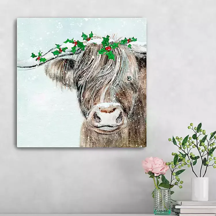 Bring some Christmas spirit to the barnyard this year! Our Holly Highland Cow Canvas Art Print is the perfect holiday accent piece for your farmhouse styled home.
