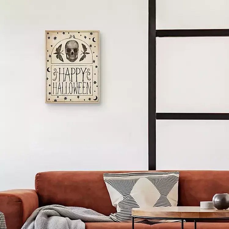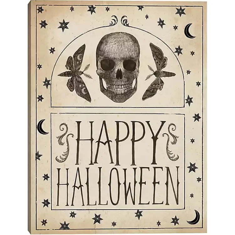 Add a vintage touch to your Halloween decor with this Happy Halloween Macabre Canvas Art Print. The skull accent will put a creepy finishing touch on you haunted house!