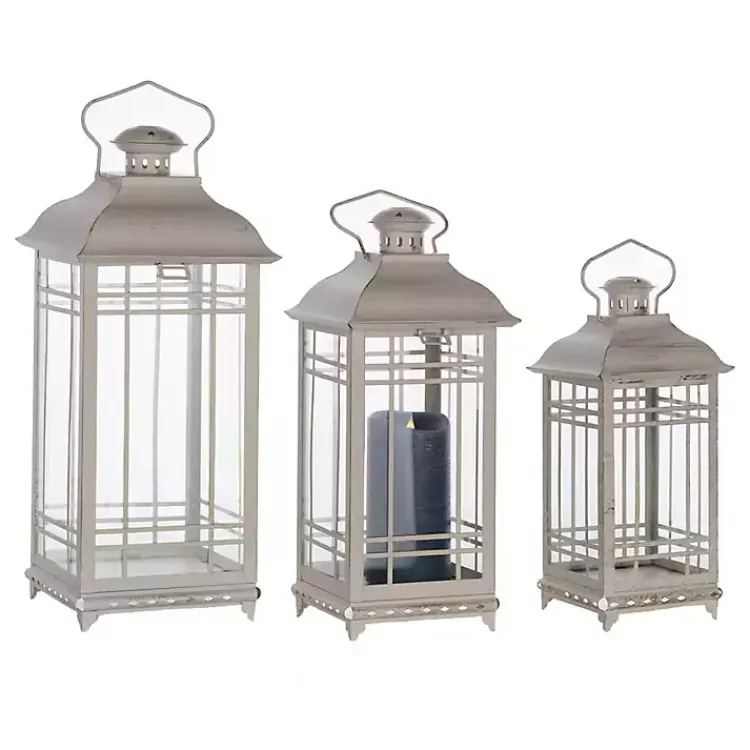 Light up any corner of your home, from the dining room to the front porch, with these White Metal Windowpane Lanterns. Their quaint style is perfect for farmhouse decor!