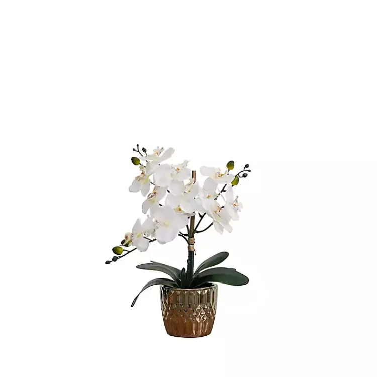 The Orchid Arrangement in Gold Decorative Pot will make an effortlessly elegant presence in your home. Silk petals enhance the handcrafted nature of this stunning piece.