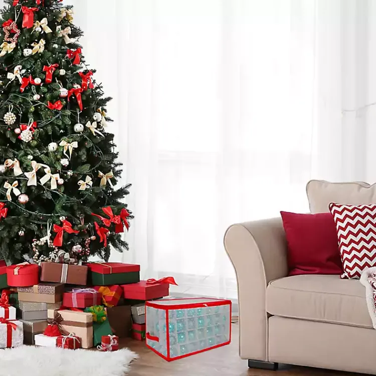 Make decorating the tree more enjoyable and organized than ever! Our Clear and Red Zip 112-pc. Ornament Storage Box keeps all your ornaments safe in one tidy spot.