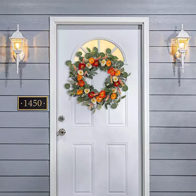This Orange Mixed Spring Floral Wreath will update your home for the season. With bright oranges and red, it brings a breath of fresh air to any space!