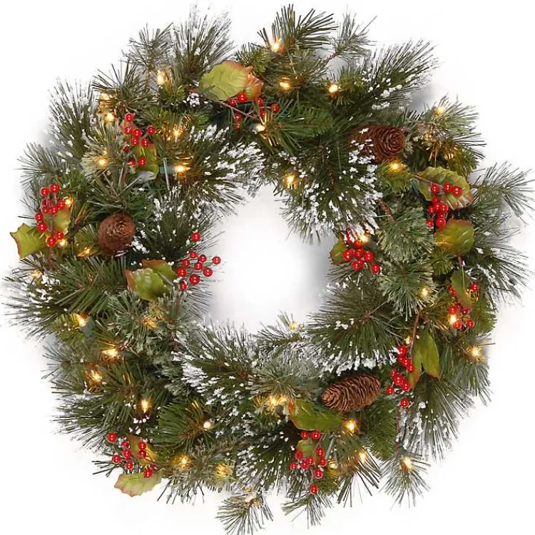 Welcome guests into your home this Christmas with this Pre-Lit Wintery Pine and Berry Christmas Wreath. You will love the berries and cones on this piece.