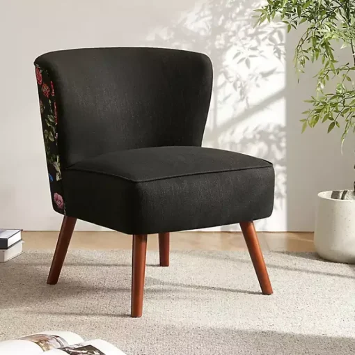 Add a subtle pop of color and pattern to your space with this Alex Black Upholstered Floral Back Accent Chair! This chair features a solid backrest and seat, while the back reveals a beautiful design. With its sleek, mid-century modern inspired lines, you’ll love how it elevates your living room or bedroom!