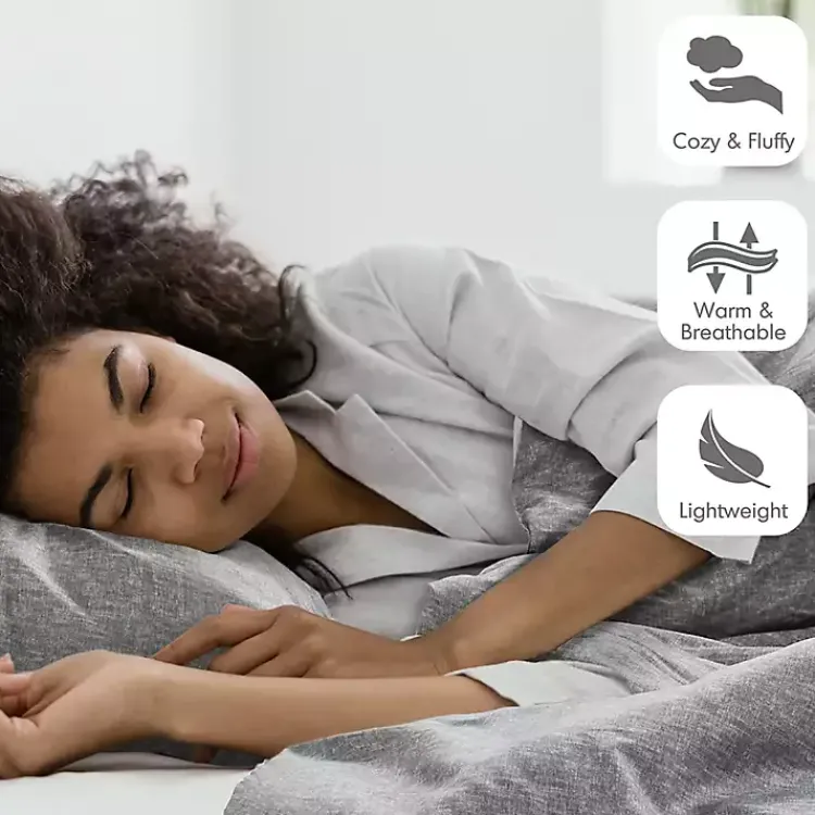 Crafted from soft and breathable microfiber, this Gray Chambray 3-pc. Full/Queen Comforter Set is casual and comfortable. Lightweight, yet warm, it adds an extra layer of coziness that is perfect for year-round use.