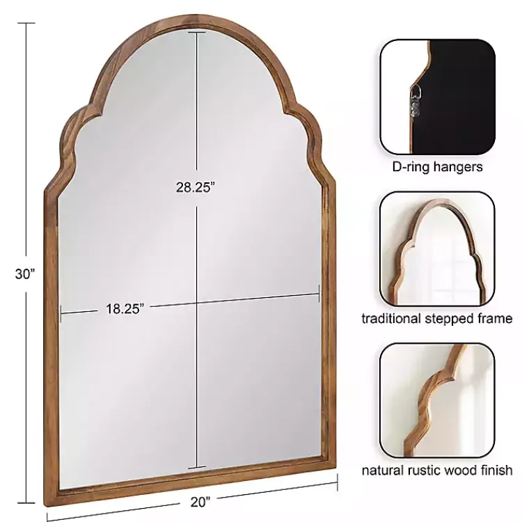 Decorate your home with the traditional and timeless Brown Wood Arch Hogan Wall Mirror. Inspired by rustic aesthetics, this mirror features a beautiful arch shape with scalloped accents, providing an elegant, vintage look.