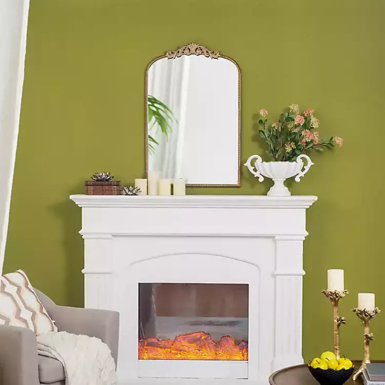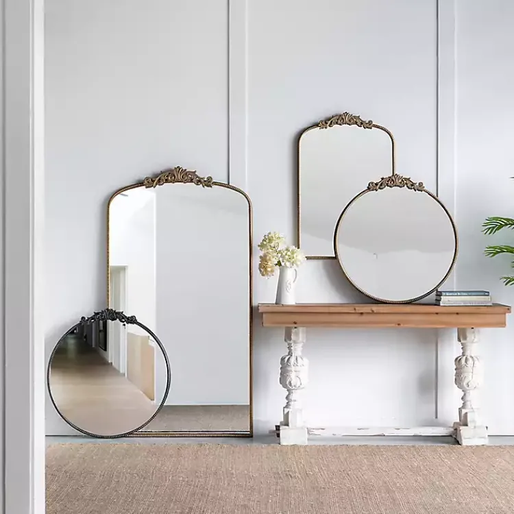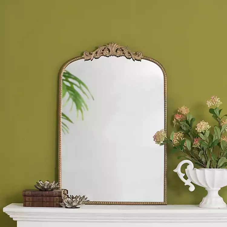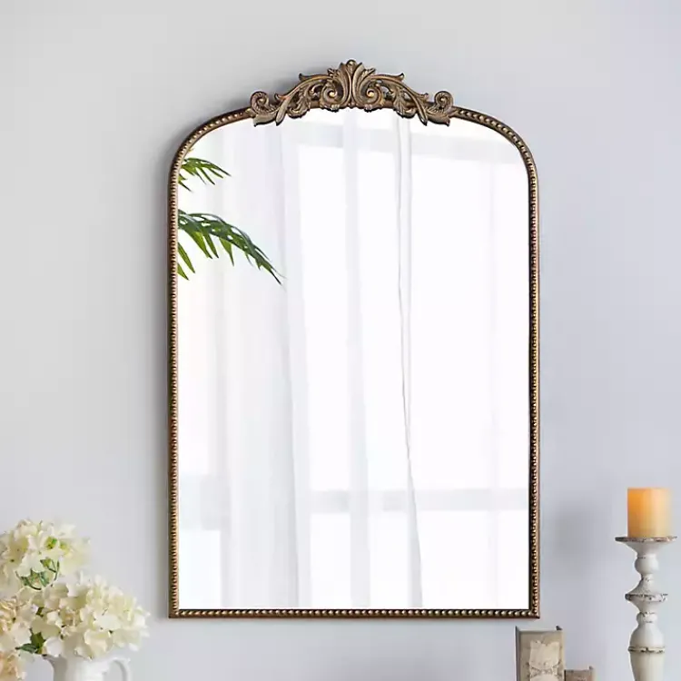 The antique look of our Gold Studded Scroll Arched Mirror makes any space look elegant and luxurious. The ornate carved scroll accent and stylish studded frame is a perfect blend of traditional and chic!