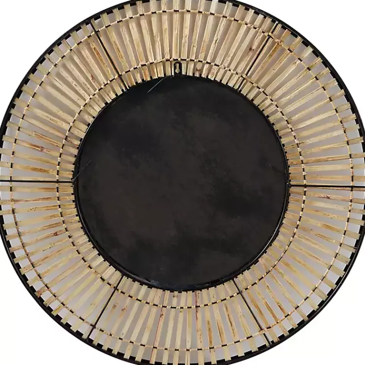 Our Natural Round Slatted Frame Wall Mirror is perfect for a modern home with touches of boho-chic flair! The natural frame details contrast with the black metal to create a beautifully sophisticated accent piece.