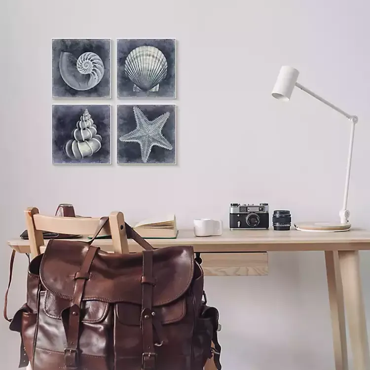 Bring a coastal feel to any room with this Nautical Seashells 4-pc. Canvas Art Print Set. You’ll love how its distressed design looks hanging from any wall!