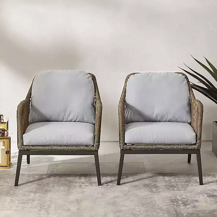 Make your outdoor space homier with these Metal Rope Outdoor Chairs with Cushions. With their natural rope style and comfy cushions, these chairs will give your patio a cozy, relaxed look everyone will enjoy!