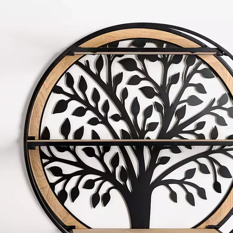 Add beauty to your wall decor with this Round Metal Tree 3-Tier Wall Shelf. With its unique style, this shelf offers a charming way to display your favorite trinkets and treasures!