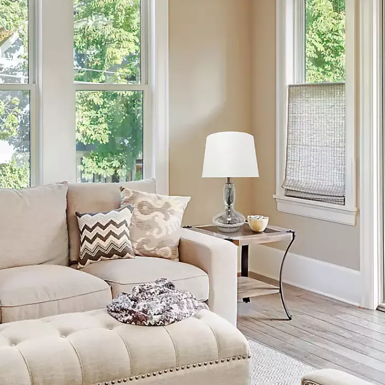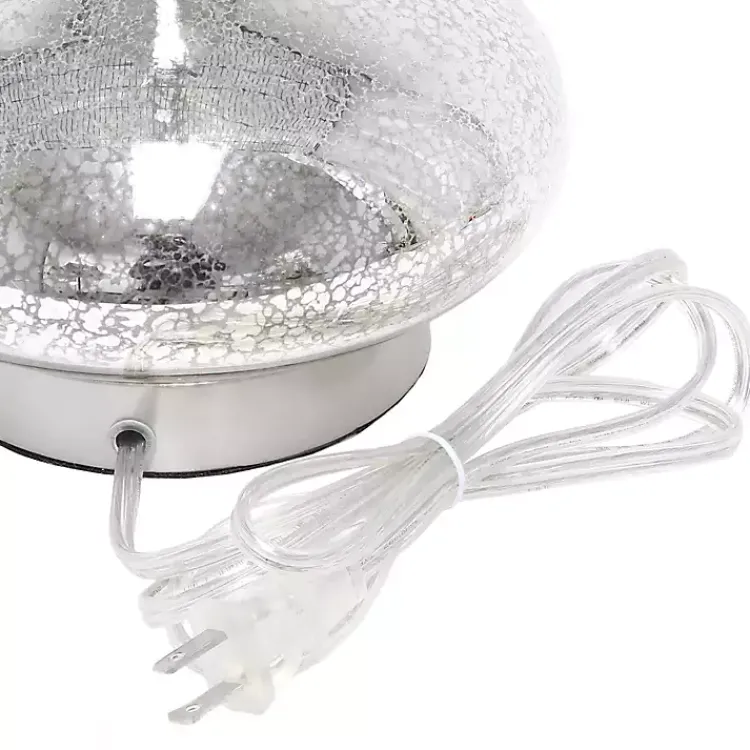 Add some light to your living space with this stunning Mercury Glass Curvy Table Lamp! Its sleek, silver finish is perfect for your luxurious style.