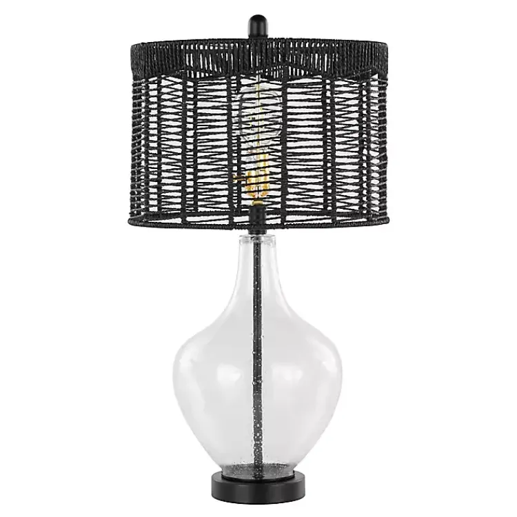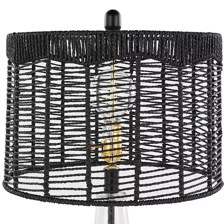Bring your contemporary style to light with the set of Black Rope Jenny Table Lamps! Their woven shades and seeded glass bases will incorporate intriguing texture into any display.