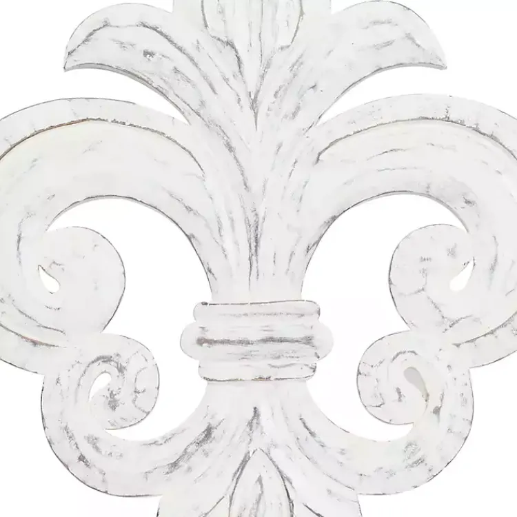 Dress up your wall with this gorgeous wall art. The Off-White Distressed Fleur De Lis Wall Decoration has all the eye-catching style your space needs to stand out.