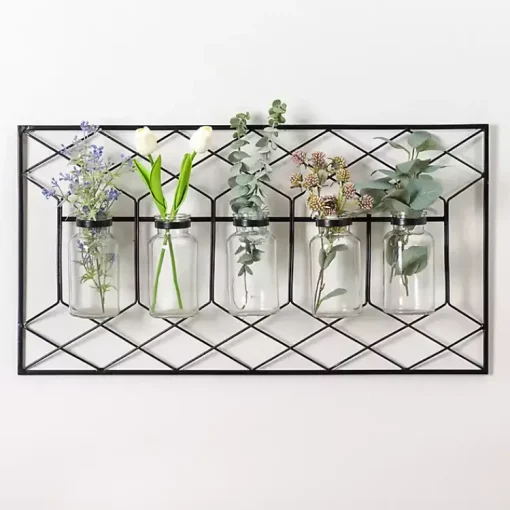 Rejuvenate your wall decor with this Metal Wire and Bottles Wall Plaque. Fill the bottles with greenery or flowers to add a delightful touch of life to your space!