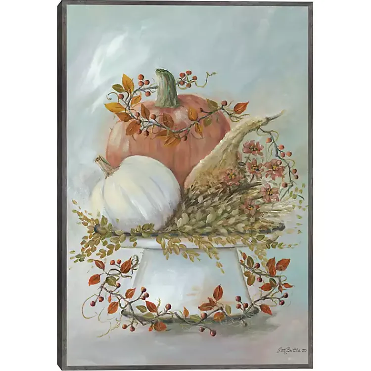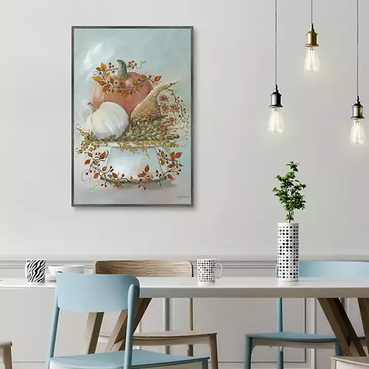 Embrace the changing season with this Harvest Arrangement Framed Canvas Art Print. Pumpkins and fall foliage will bring the magic of autumn into your home!