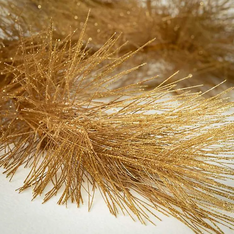 Create a sense of opulence and glamour in your winter wonderland with this Gold Sparkle Pine Christmas Garland. Its beautiful metallic finish makes it an eye-catching centerpiece for a mantel or table display.