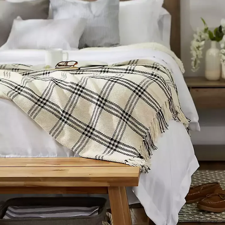 This Black Plaid Fringe Throw creates a feeling of comfort that every space needs. Plus, its simple plaid design looks great with any kind of decor.