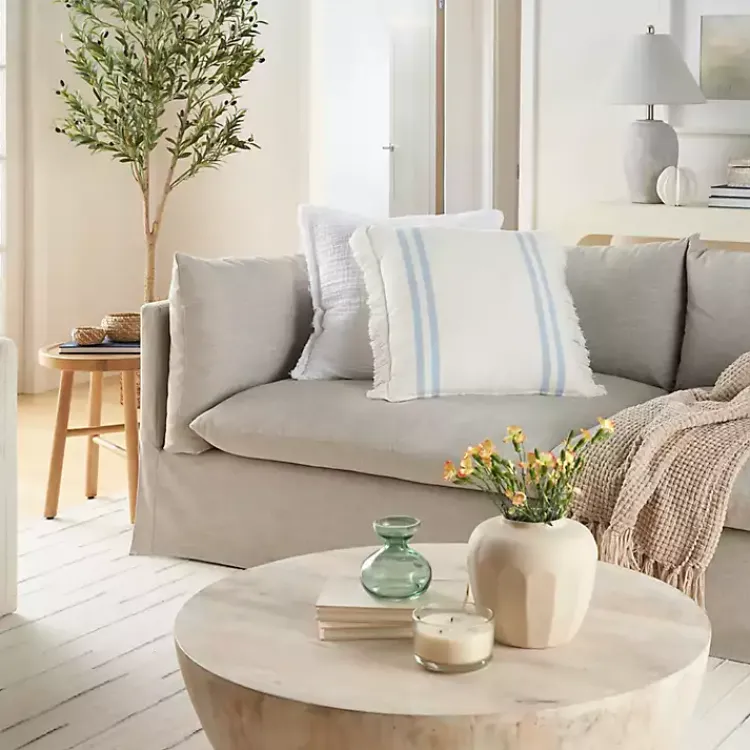 You’ll love the light and airy feel that our Blue Striped Linen Throw Pillow brings to your space! The breezy hues paired with the natural cotton and linen blend is perfect for a simple, clean refresh for your home!
