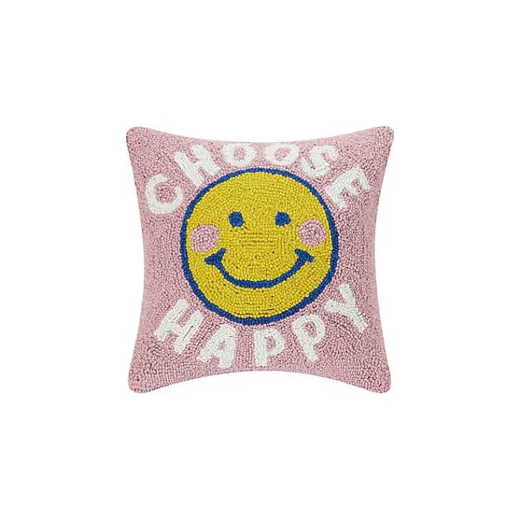 Brighten your sofa and your days with this Choose Happy Hooked Wool Pillow. Its fun, cheerful design and hooked texture are sure to stand out in your space!