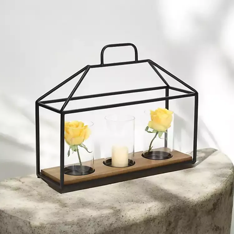 Embolden your living room decor with our Three Glass Inserts Black Metal Lantern. This lantern can easily hold flowers, marbles, electric candles, and so much more with its included glass inserts.