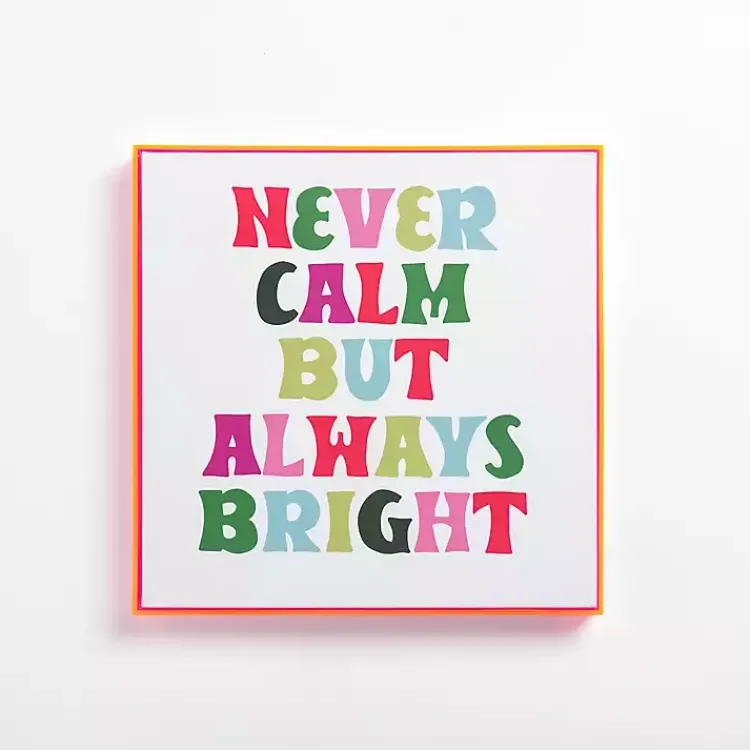 Liven up your walls with this Never Calm Always Bright Framed Canvas Print. Its bright colors and cute phrase put a fun, modern twist on Christmas decor!